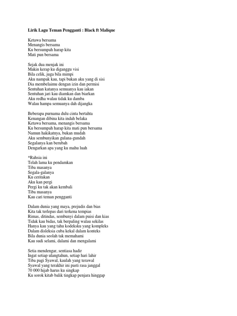 Black Malique Teman Pengganti Lyrics Genius Lyrics